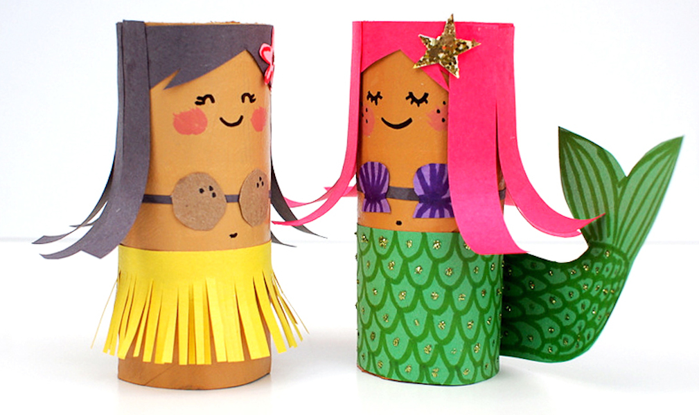 How beautiful are these dolls made with paper rolls! We propose you to do a simple handcraft like the one above in your birthday party, it will be fun and gives you the oportunity to generate in the little mermaids and mermen awareness on the impotence of recucing the garbage we generate that en into the sea.. Here we bring you a funny proposal by moolymoion crafts, http://mollymoocrafts.com/toilet-roll-crafts-mermaid/ but there are many more in the internet.